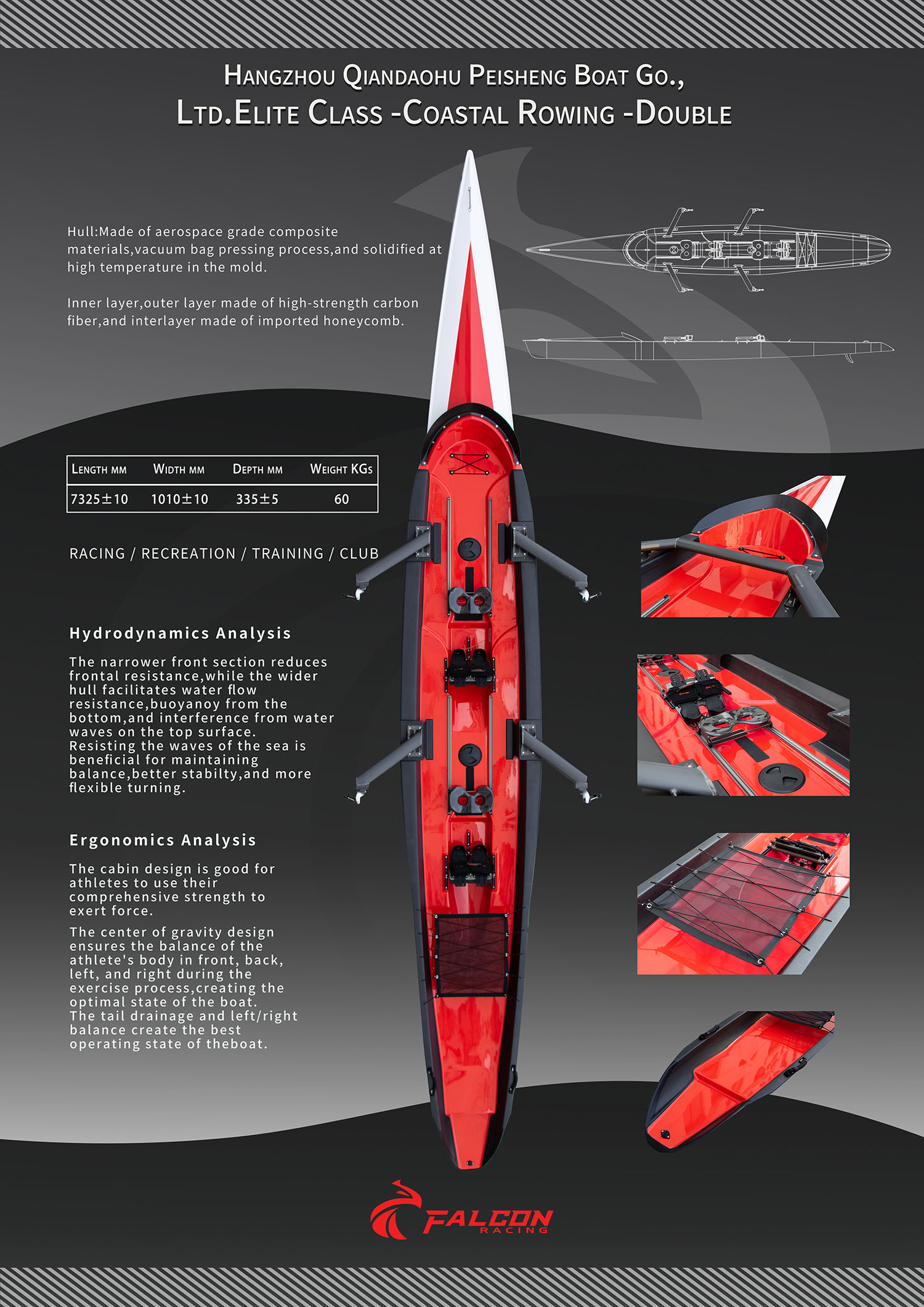 The center of gravity designensures the balance of theathlete's body in front, backeft, and right during theoner ae nare orine boag theThe tail drainage and left/rightbalance create the bestoperating state of theboat.